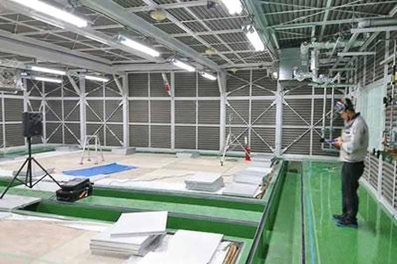 Both the interior and exterior are made of non combustible materials, allowing for the measurement of the acoustic characteristics of the engine and testing of the machine in factories and laboratories.